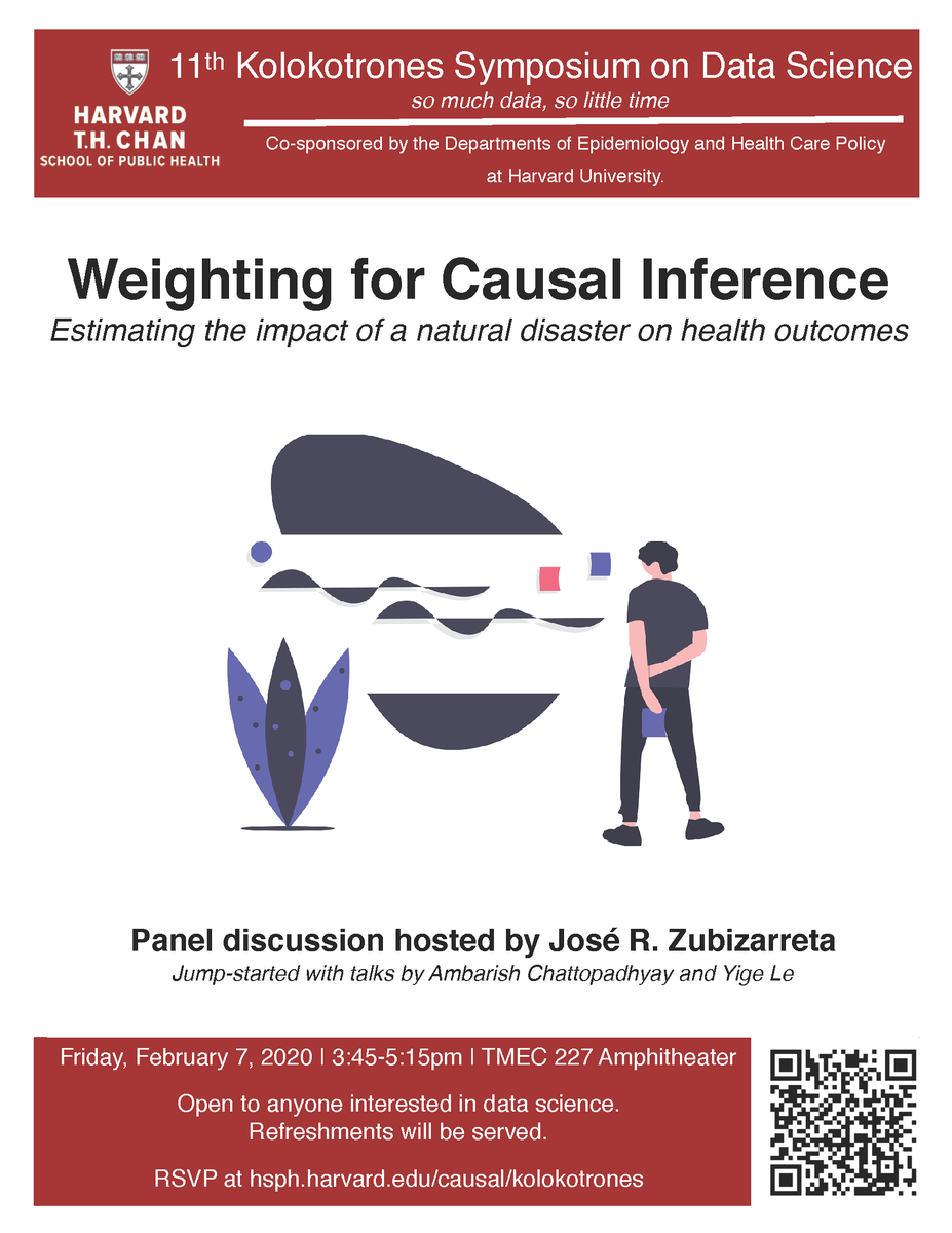 @HMSHCP faculty member José Zubizarreta on February 7 for a panel discussion on estimating the impact of a natural disaster on health outcomes using weighting for causal inference. This event is part of the Kolokotrones Symposium on Data Science at@HarvardChanSPH.pic.twitter.com/Q19tTy9o7p