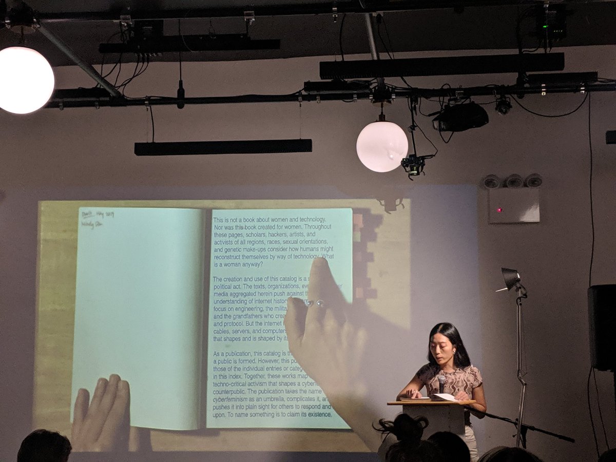 @mind_seu demonstrating the winding experience reading her Cyberfeminism Catalog, an alternative telling of internet history#radnets19pic.twitter.com/RPKasbh3p1