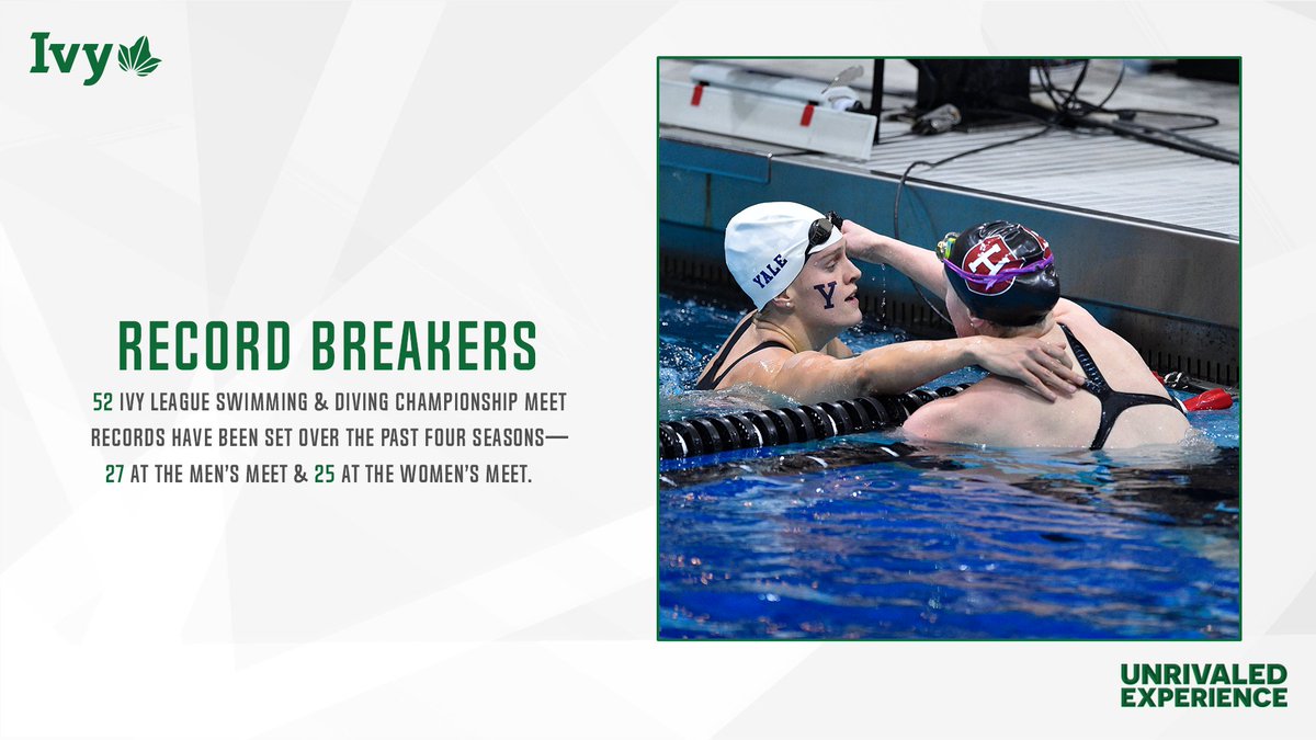 RECORD BREAKERS. 52 Ivy League Swimming & Diving championship meet records have been set over the past four seasons—27 at the men's meet & 25 at the women's meet.