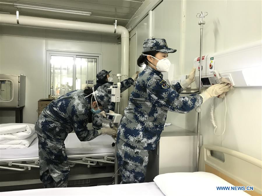Medical staff test facilities and make the bed at Huoshenshan Hospital to make final preparations to admit patients infected with the novel