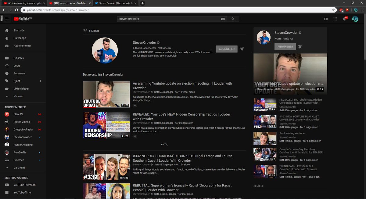 This is what pops up when you search "Steven Crowder" in Norwaypic.twitter.com/V7fx7gbhJL