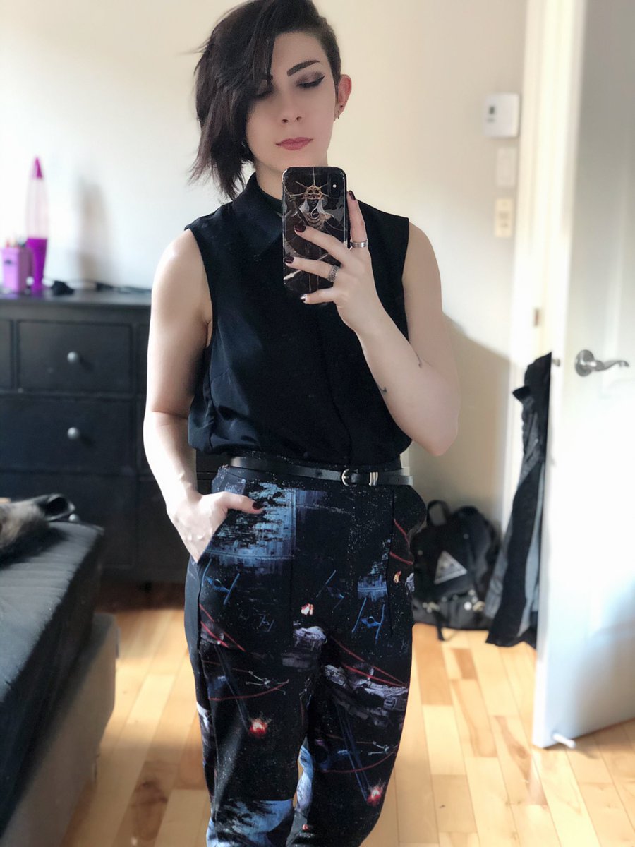 Happy launch day #StarWarsSquadrons !! 🥳 In an alternate universe I’m giving high fives to all my @MotiveMontreal pals in my epic Star Wars space battle pants 🖤 Happy flying, pilots, keep an eye out for one Dangerous Onion in PvP matches 👀pic.twitter.com/p4SwfI4oWv