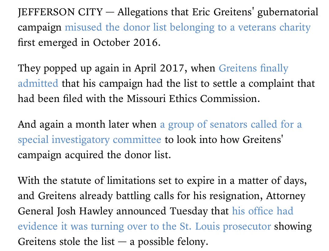 That time Josh Hawley delayed investigating Eric Greitens until the statute of limitations was set to expire. https://www.kansascity.com/news/politics-government/article209259634.html …pic.twitter.com/XSXWXpXx0b