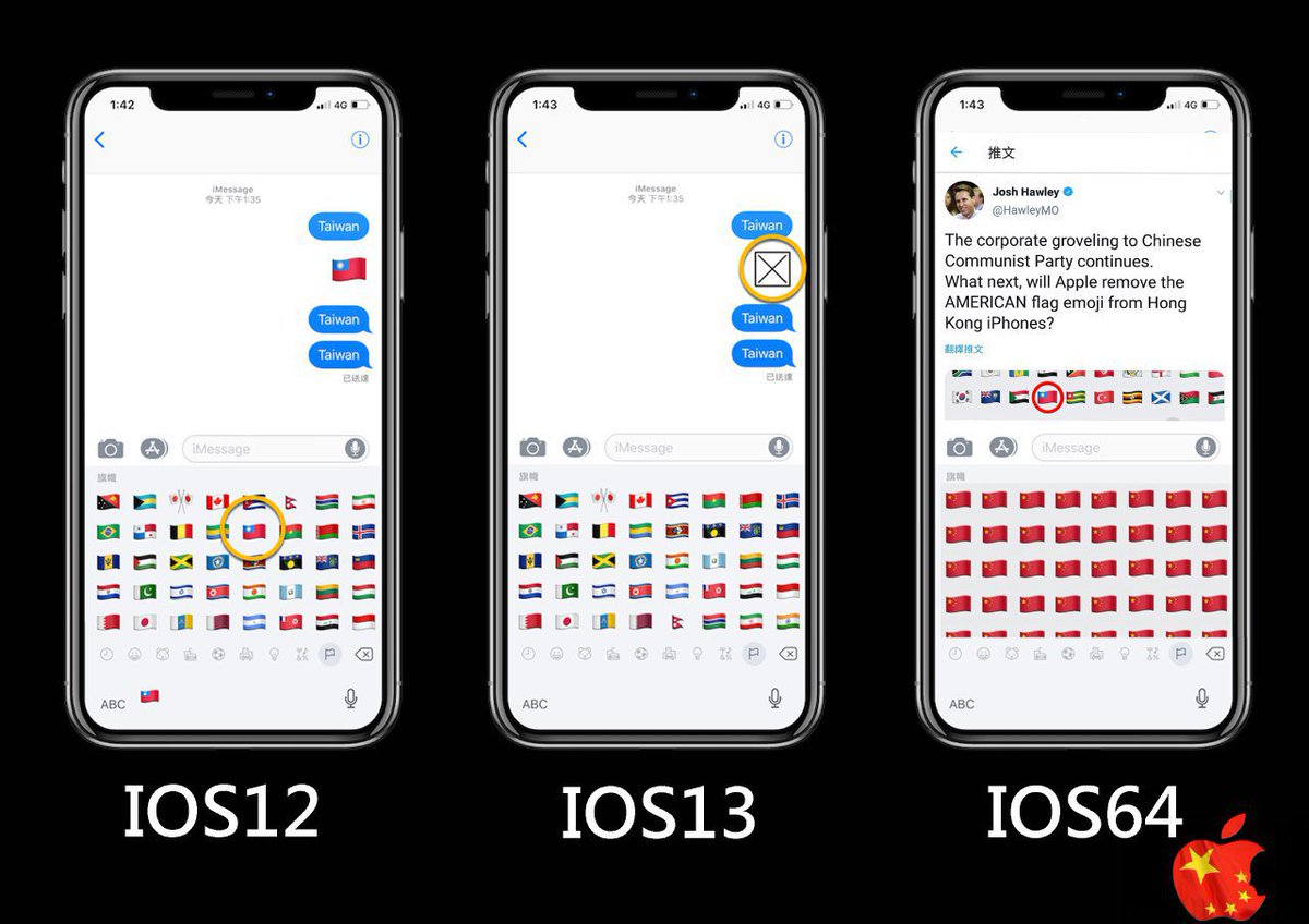 I'll put it this way, #Apple is red: 1. Deleting the emoji of Taiwan Flag 2. Removing @hkmaplive app from AppStore, but another similar app Waze (for global usage) can still be found They now support #CCP tyranny, instead of standing with freedom and justice. Shamepic.twitter.com/Uz8WDgWh3N