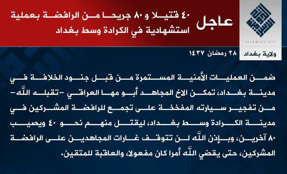Friend at the scene of car bomb in Baghdad: families of the victims are screaming, bodies burnt on the street. I can't describe the carnage.