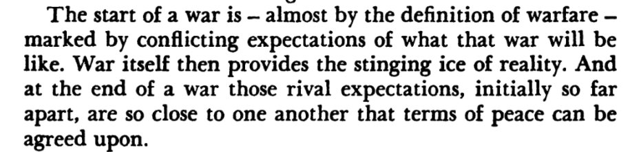 Thinking a lot about this passage from Blainey, The Causes of War, 3rd ed., p. 56.