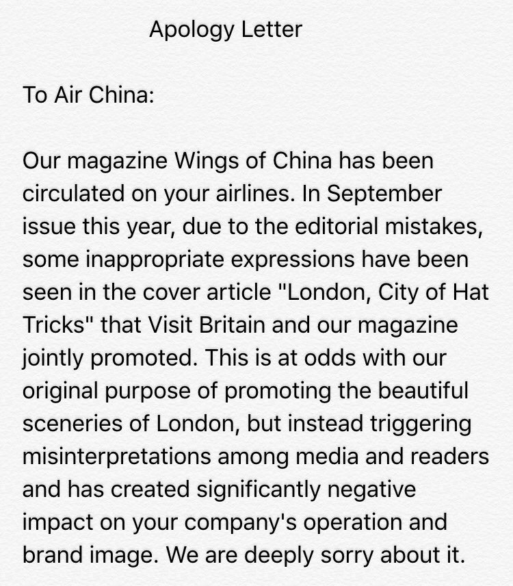 Where the apology to China for virgin atlantic discrimination!!!!!
