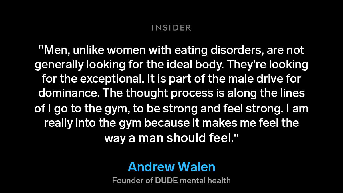 Eating disorders are often associated with "young girls," leading to men who also struggle being misunderstood. @thisisinsider spoke to men who have lived with disordered eating and muscle dysmorphia experts. https://www.insider.com/muscle-dysmorphia-makes-me-feel-way-a-man-should-feel-2021-8 …pic.twitter.com/VbtqyBeyy6