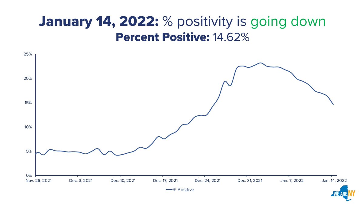 In just one week, we went from 90,000 to 49,000 cases. We are turning the corner on the winter surge, but we're not through this yet. Keep getting vaccinated, Keep getting boosted, Keep wearing masks, Keep doing the right thing.