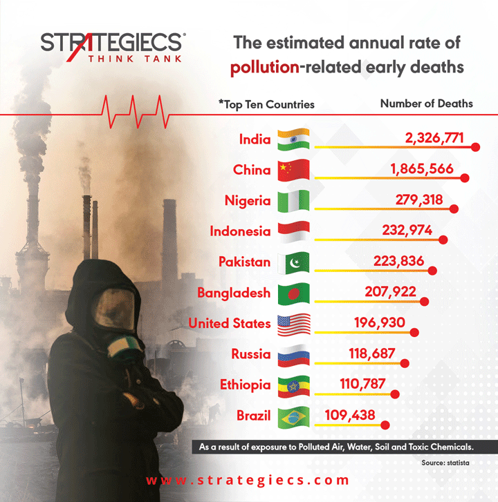 #STRATEGIECS| A recent study conducted by@HealthPollution showed that 8.3 million people die every year as a result of exposure to polluted air, water, soil and#toxic_chemicals, where at least 90% of early deaths from#pollution take place in low and middle income countries.pic.twitter.com/xMiyAwZP5H