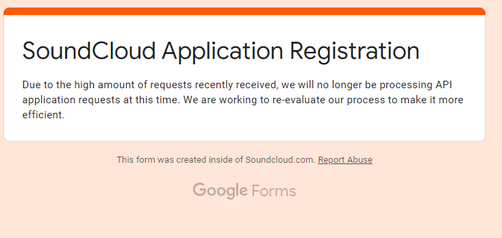 @SoundCloudDev@SoundCloud - When will you be accepting new API connection requests? We've been waiting for >1 year. Thank you!pic.twitter.com/MwwO2bm4mH