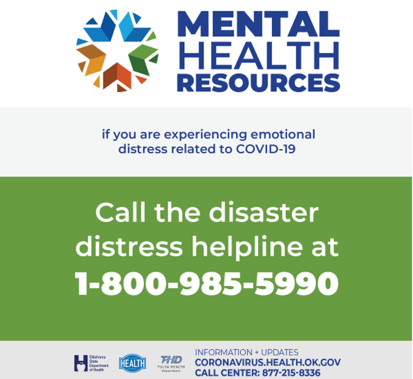 #Reminder If you are experiencing emotional distress related to#COVID19, please call 1-800-985-5990. As the pandemic continues to impact our daily lives, OSDH will provide free mental health resources.pic.twitter.com/RpxmAICJce