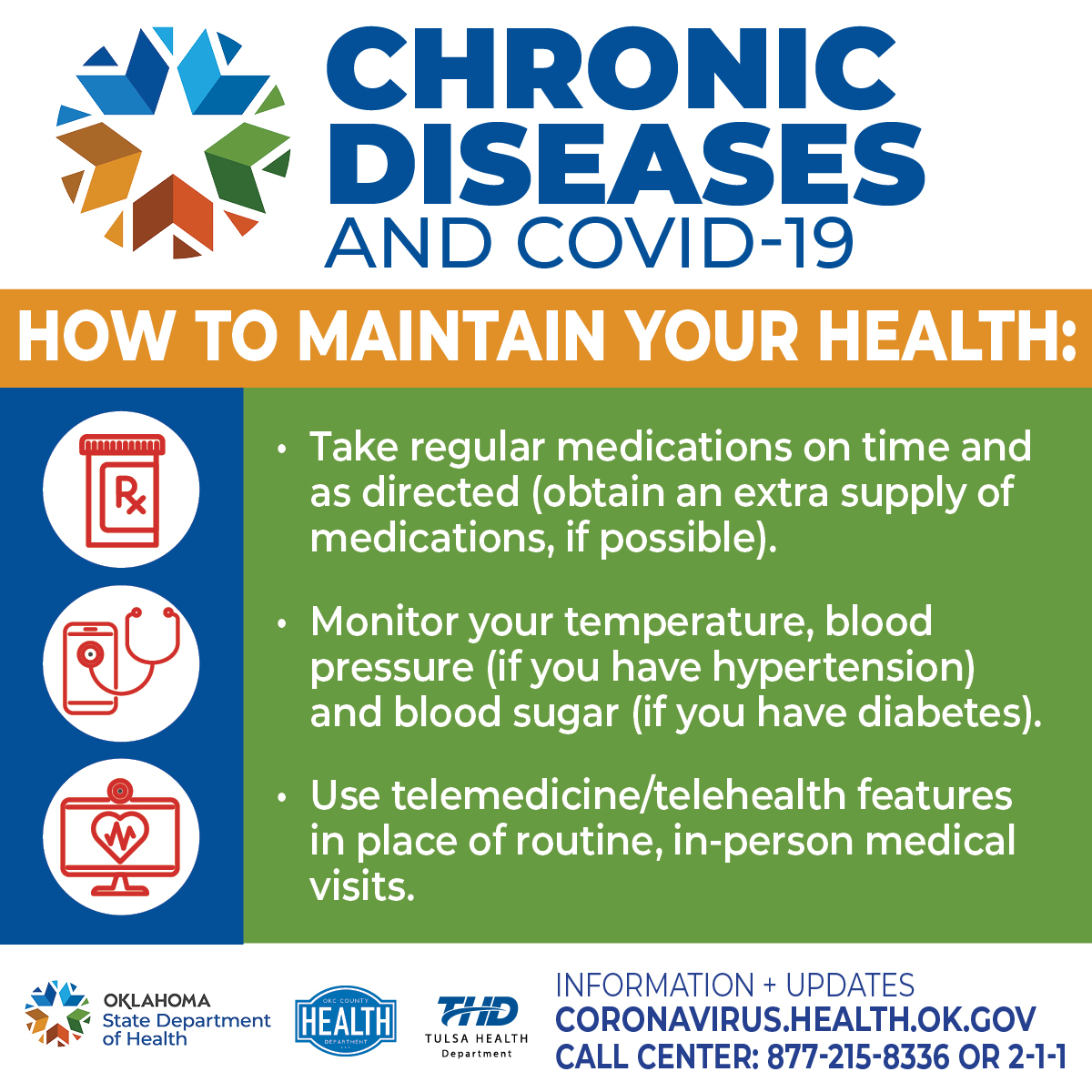 #COVID19 while living with a chronic disease? Follow these tips to help maintain your health. For more information about managing your condition during a global pandemic, please visit http://ow.ly/HbqB50zj8Ny pic.twitter.com/MS5S0YzVzV