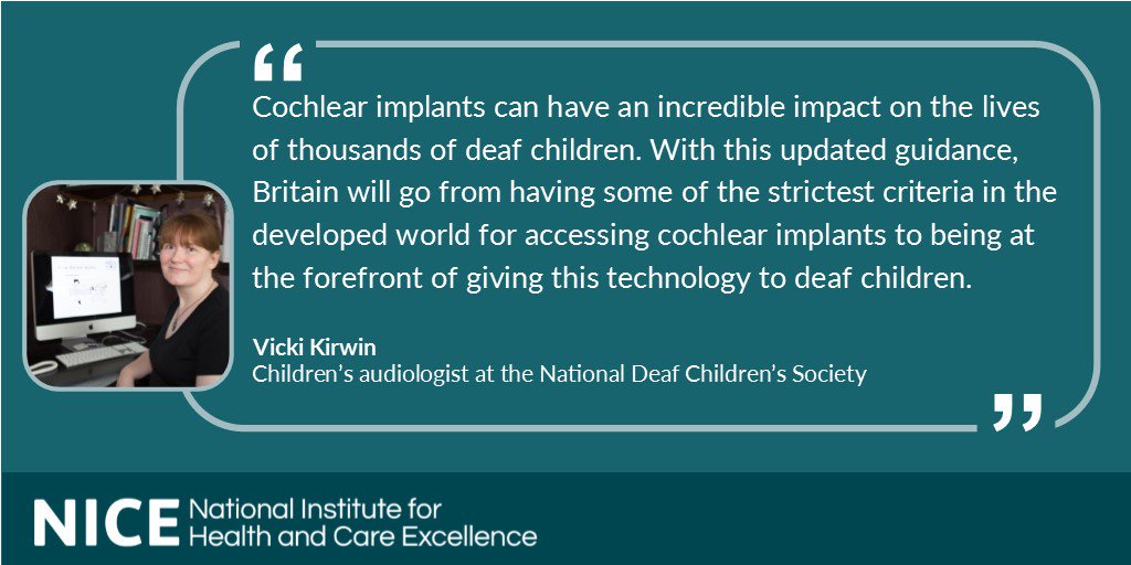 #deaf children and adults will need or want a cochlear implant – but NICEcomms's announcement is fantastic news for those that do. https://twitter.com/NICEcomms/status/1081128103387295745 …"