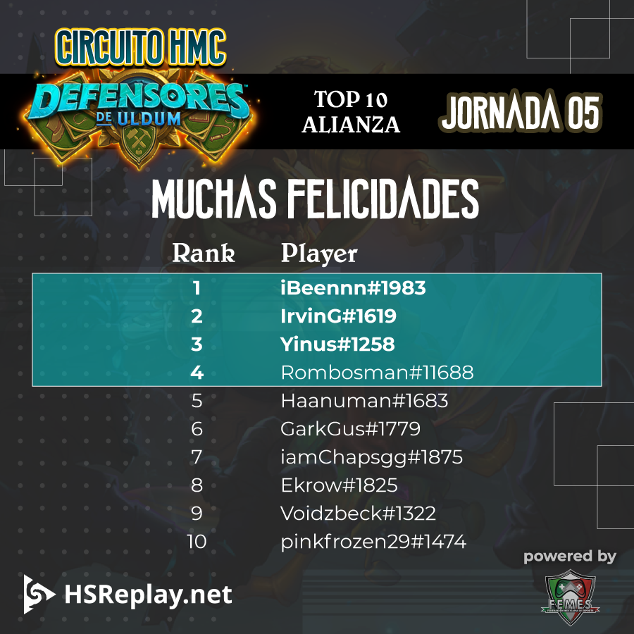 #CirctuitoHMC | TABLA DE POSICIONES | J5