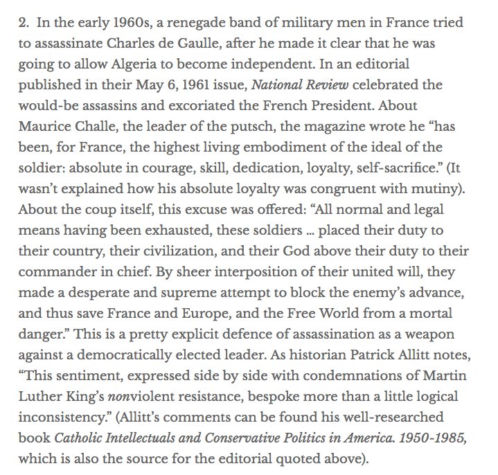 7. Shocked by Le Pen at CPAC? In 1960s National Review celebrated French far right assassins who tried to kill Charles De Gaulle.pic.twitter.com/f7extHO4df