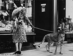 Phyllis Gordon window-shopping in Earls Court with her cheetah. #AMT399