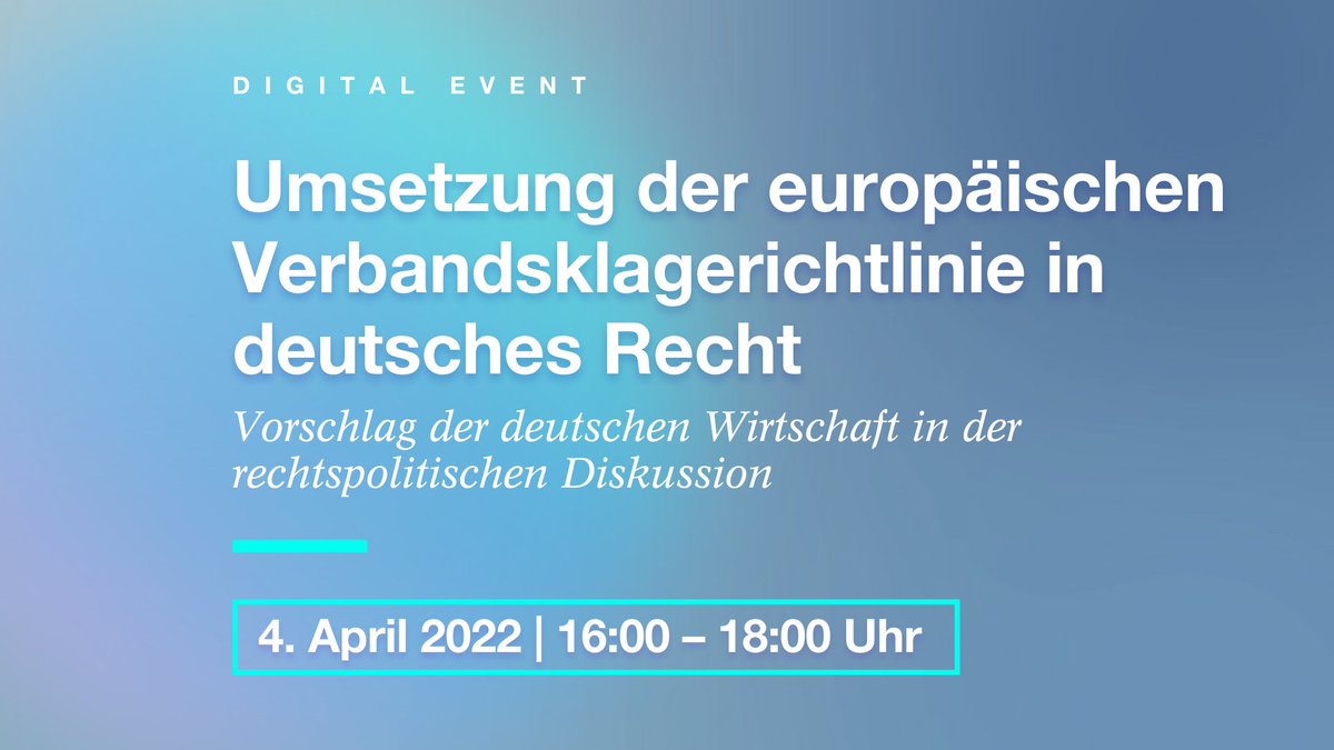 #Webtalk: Über Vorschläge zur Umsetzung der#EU-#Verbandsklagerichtlinie diskutieren wir mit@sonjaeichwede,@Helge_Limburg,@KatrinHelling,@MartinPlumMdB und Prof. Dr. Alexander Bruns (@UniFreiburg).
