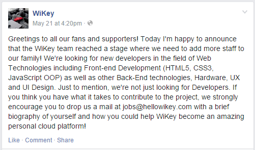 It’s important to mention that WiKey as a cloud doesn’t have anything with ordinary cloud systems. http://goo.gl/BM6DSh