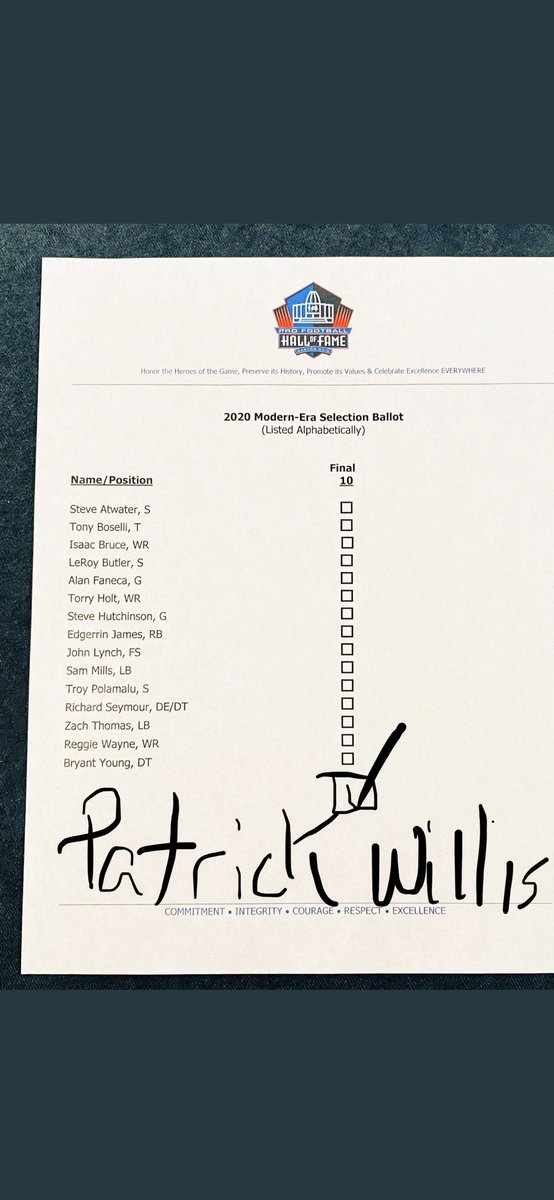Patrick Willis is the best player in this class. He doesn’t even sniff the final list but Troy Polamalu gets in first ballot. The process is a joke.https://twitter.com/AdamSchefter/status/1223733493458403329 …