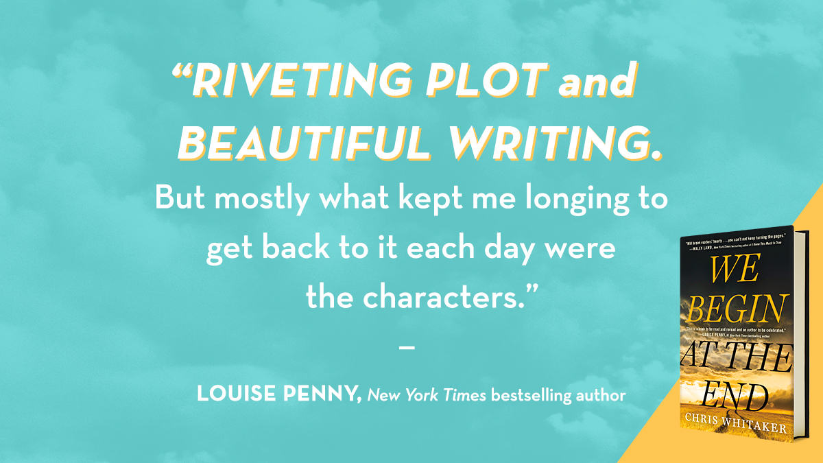 We can’t wait for you to fall in love with the characters of WE BEGIN AT THE END like Louise Penny did! Pre-order your copy before it hits shelves 3/2: https://chriswhitaker.com/