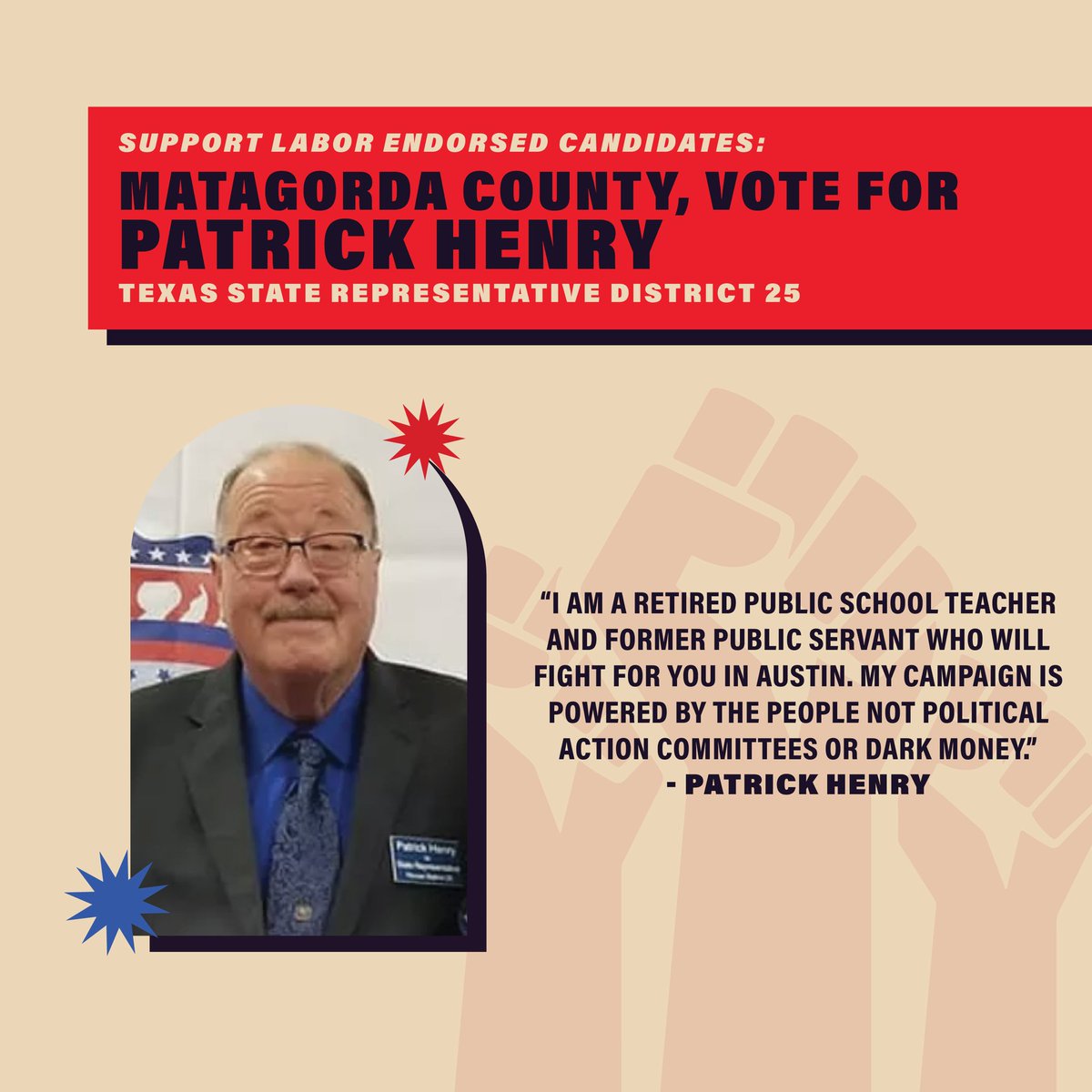 It's time to make your voice heard, Matagorda County! Early voting continues tomorrow - before you go, print off a copy of the Matagorda County Labor Slate and bring it with you to the polls!