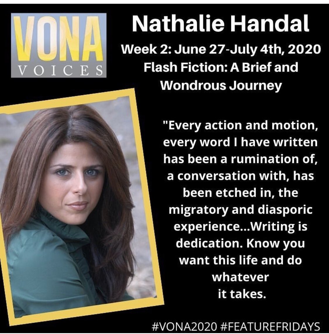 VONA!!!! Check out who is joining VONA faculty—Nathalie Handal, curator of Words without Borders. She is fire and will light your words and guide your work. Welcome to VONA, sister! Applications for Summer 2020 are open now!https://twitter.com/vonavoices/status/1220883569654075393 …
