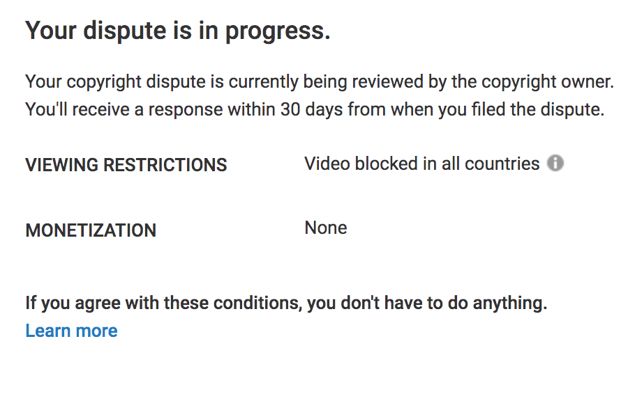 Hey @TeamYouTube I think 30 days is a pretty long time. Can you just like... force Fox to look at my claimpic.twitter.com/S6d8Jvjthl