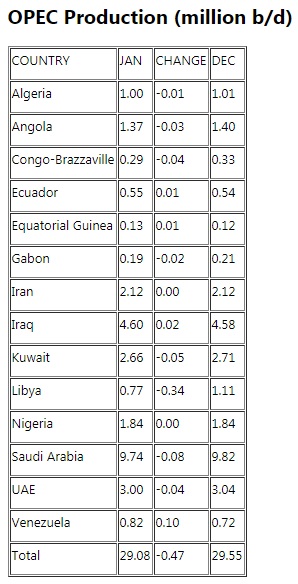 #OPEC crude oil output fell 470,000 b/d in Jan: latest@PlattsOil survey#OOTT