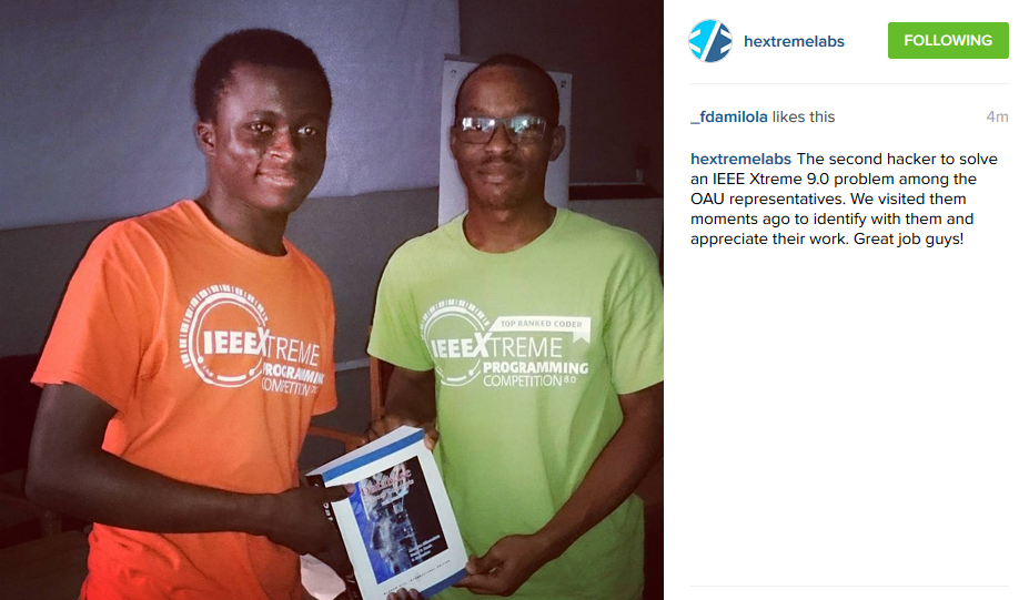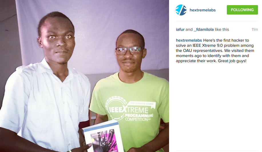 Here's the first hacker to solve an IEEE Xtreme 9.0 problem among the OAU representatives. We visited… https://instagram.com/p/9OcHoOjwNJ/