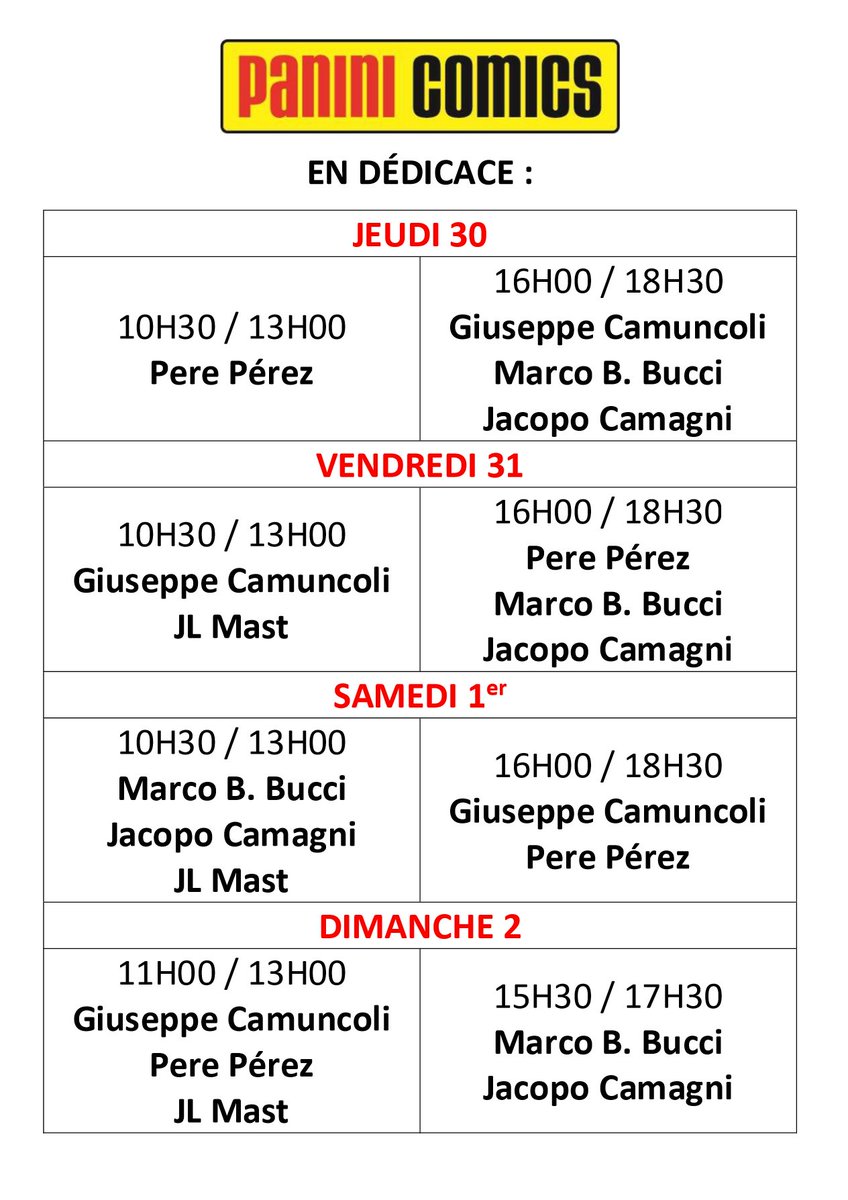 @bdangouleme, en plus de G. Camuncoli, P. Pérez, JL Mast, J. Camagni & M. Bucci nous aurons le plaisir de recevoir sur notre stand@HansStephanie ! Voici les horaires et conditions de dédicaces mis à jour !pic.twitter.com/2LivSGx3dq