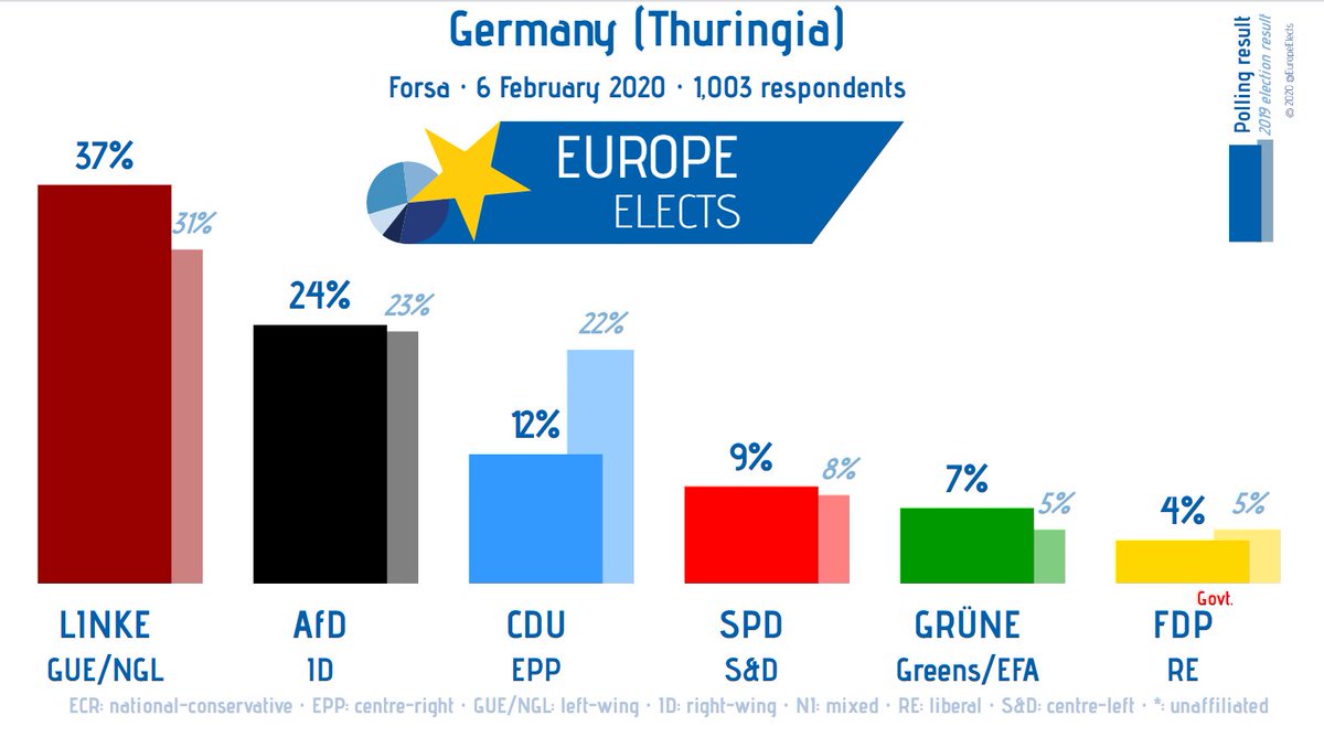 CDU collapse in Thuringia after they work with AFD to put FDP in govt, voters flock to incumbent Linke.https://twitter.com/europeelects/status/1225784216664838144 …