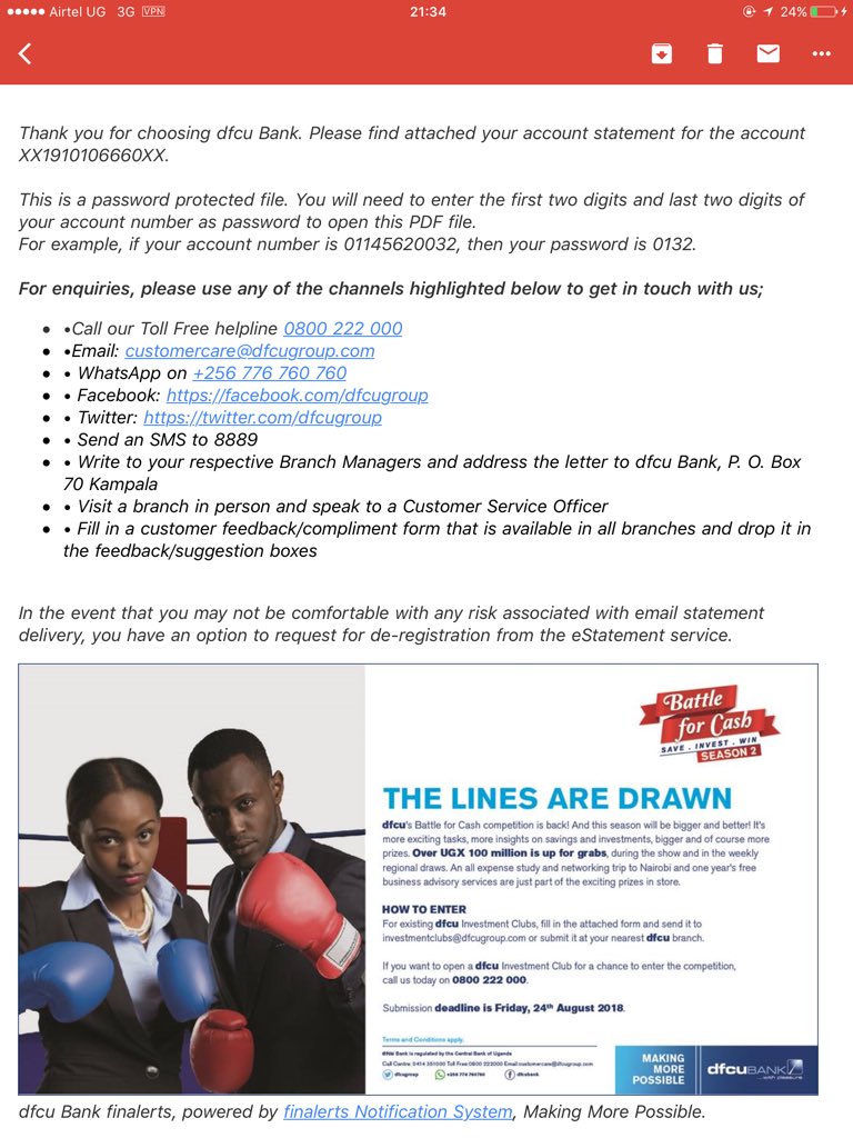 DFCU Bank keeps sending me emails and gives Twitter as one of the options to reach them