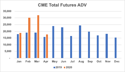 $CME reported April volume figures today - while not the blowout we saw in Feb & March, April ADV still outpaced 2019 by 13%:pic.twitter.com/SOfZJ5B5H0