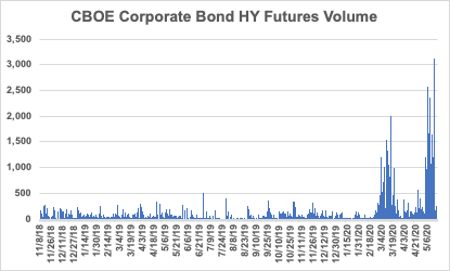 Interesting - $CBOE's previously dormant HY corporate bond futures suddenly sees dramatic spike in volumes amid pandemic & Fed intervention. Will be worth watching if/how product grows in the coming months:pic.twitter.com/Uu4cafrxBx
