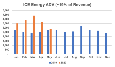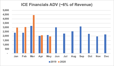 VOLUME UPDATE: $ICE volumes have decelerated modesty after #COVID19 volatility subsides: