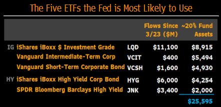 THE FED FIVE: Here are the 5 ETFs the Fed is most likely to use: $LQD, $VCIT, $VCSH, $HYG, $JNK. They check all the boxes in terms of exposure, liq and aum capacity while employing multiple issuers in order to achieve goal of not influencing mkt share in corp bond ETF category. pic.twitter.com/b8YkHIT5Vs