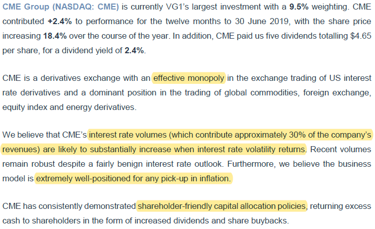 VGI Partners on its largest holding CME Group $CME (July 2019)