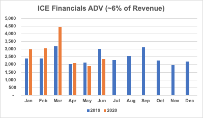 VOLUME CHECK IN: $ICE volumes not looking great on their own, but doing much better relative to $CME: