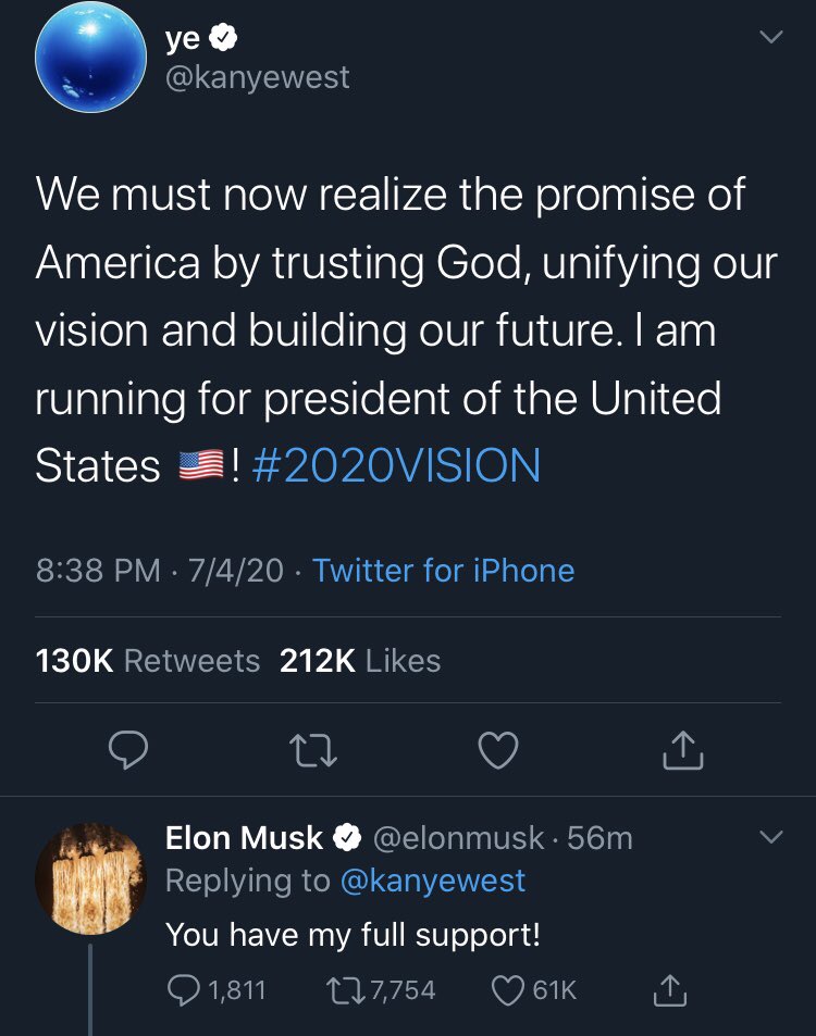 Well @kanyewest would probably steal votes from @JoeBiden, so it gives @realDonaldTrump a chance to win.
