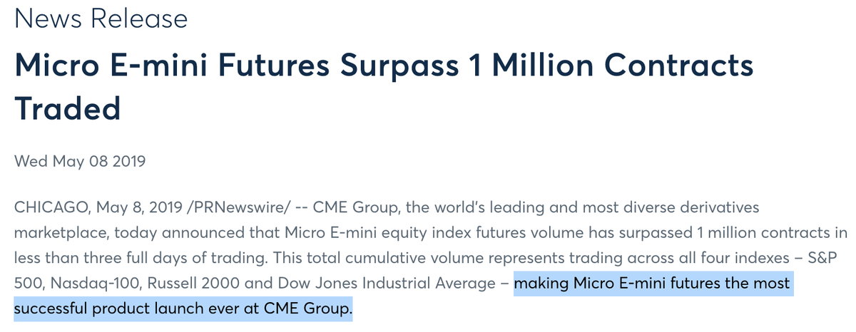 When $CME launched micro e-mini futures in mid-2019, they turned out to be the best product launch in the company's history.