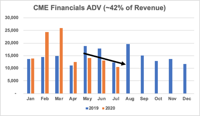 Yes - low interest rate volatility is hurting both the futures market (CME) and the cash market (CME & Tradeweb).