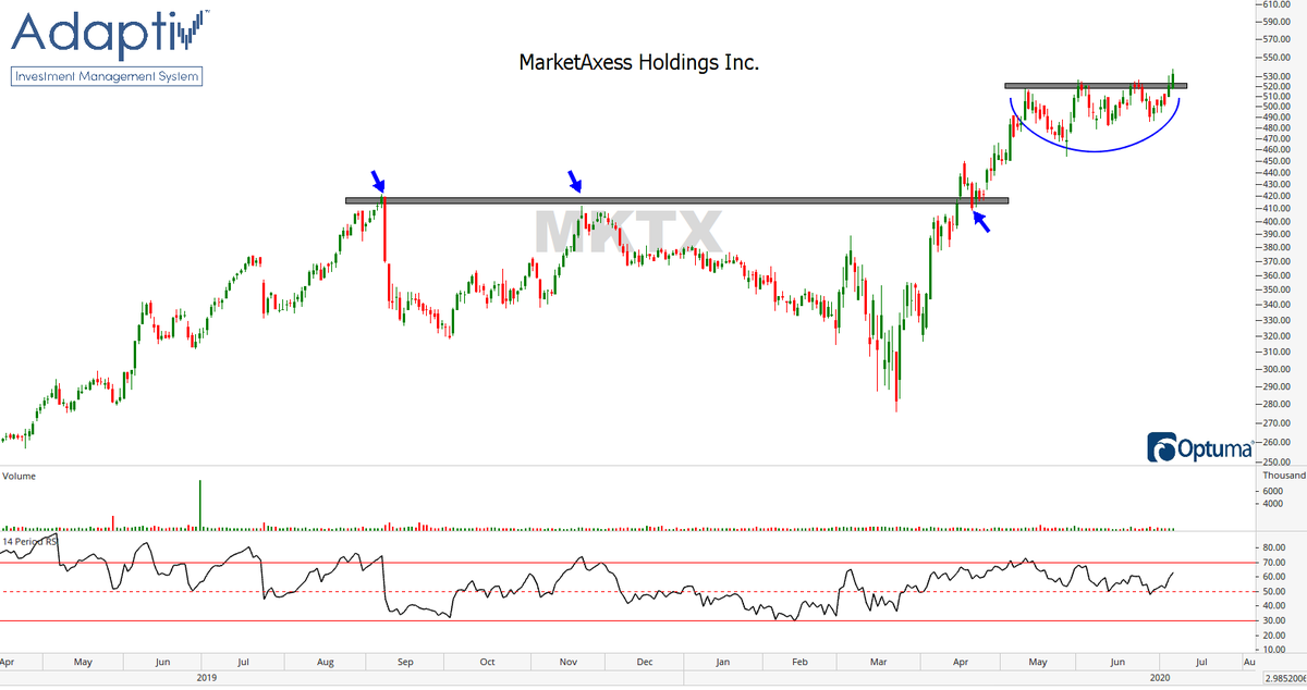 $MKTX MarketAxess ..."Operates an electronic trading platform that enables fixed-income market participants to trade corporate bonds and other types of fixed-income instruments". Been waiting on this one. A BIG TIME relative strength leader lately. Now hitting new absolute highs.pic.twitter.com/6WlFmD88Ex