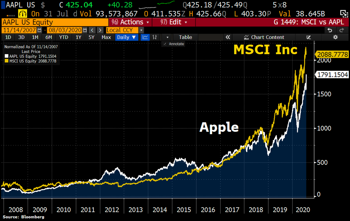 Better than Apple! Shares of MSCI has gained 2,088% since IPO in 2007 even beating Tech Giant as index providers like MSCI, S&P Global, LSE (FTSE Russell) or Deutsche Börse have minted money w/ETF craze. Stocks expensive but may have more upside. https://www.welt.de/finanzen/geldanlage/plus212660915/Diese-Aktie-schlaegt-sogar-Apple-und-erweist-sich-als-krisensicher.html?cid=socialmedia.twitter.shared.web … via @weltpic.twitter.com/odRJurn2KS