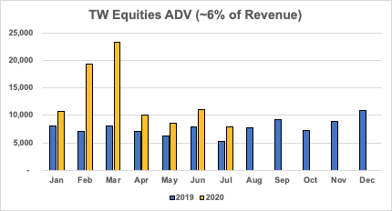 Tradeweb July volumes are in: Rates -12% YoY Credit +30% Money Markets +13% Equities +51% Biggest category (rates) down YoY and MoM:pic.twitter.com/0NSzEwnnLF