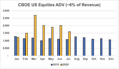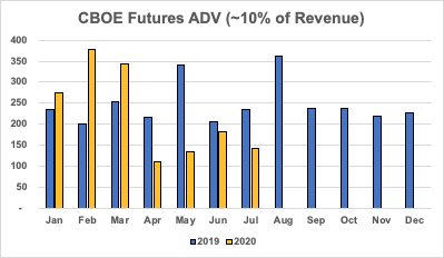 CBOE July volumes are in: Futures -39% YoY Multi-Listed Options +53% Index Options -25% US Equities +48% A tale of 2 markets - cash equities and options on fire, VIX futures and SPX options struggling:pic.twitter.com/LHK7B7pWRg