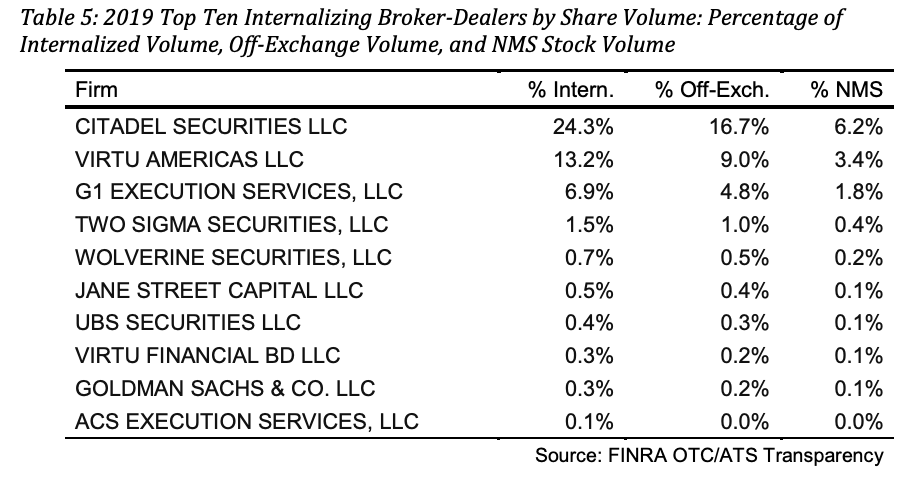 Of the internalizing broker-dealers, Citadel is far and away the leader, followed by Virtu:pic.twitter.com/9MO5qjOGpY