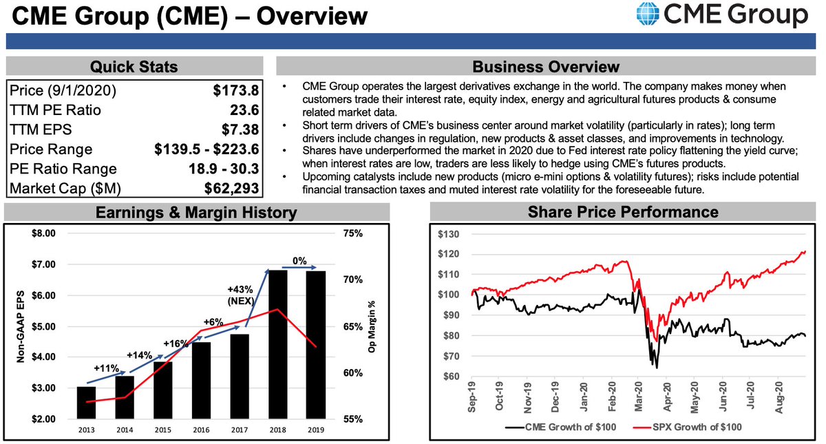 Below is a 1-slide primer on CME's business & stock drivers: - quick PE & EPS stats - earnings history - business overview - share price performancepic.twitter.com/ErlYl5i11i