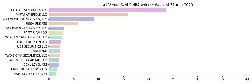 Here are the "standings" of who reports to FINRA. Note that names without a MIC code are firms, not dark pools. Citadel, Virtu, and G1 are almost half of all reported volume.pic.twitter.com/XiiNzV3to9