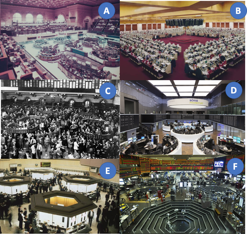 What's the best shape for a trading floor? A: 1980s American Stock Exchange B: Hong Kong Exchange C: 1960s New York Stock Exchange D: Deutsche Boerse E: 1970s London Stock Exchange F: Chicago Mercantile Exchangepic.twitter.com/pds9s6R2O0